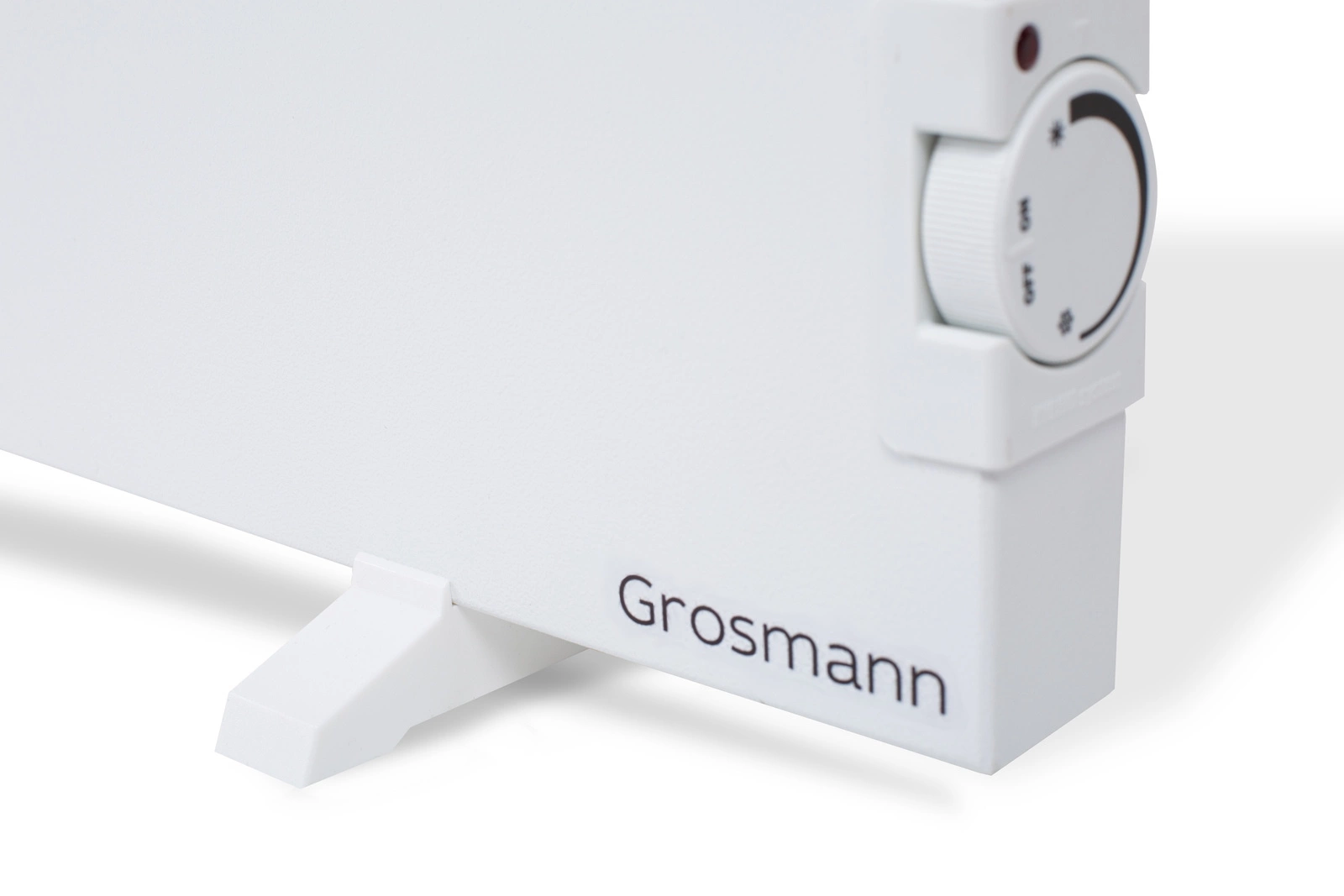 Tym, co odróżnia Grosmann Hybrid od zwykłych grzejników elektrycznych, jest to, że jego strona frontowa emituje ciepło do otoczenia poprzez fale podczerwone, podobne do promieni słonecznych. Ten typ ogrzewania szybko i bezpośrednio ogrzewa osoby, zwierzęta i przedmioty. Za elegancką, białą metalową powierzchnią grzejnika elektrycznego Grosmann Hybrid znajduje się wysokiej jakości, unikatowa, niklowo-węglowa mata grzewcza, zapewniająca równomierną emisję promieniowania. Dzięki czemu grzejniki Grosmann są wysoce wydajne i energooszczędne.