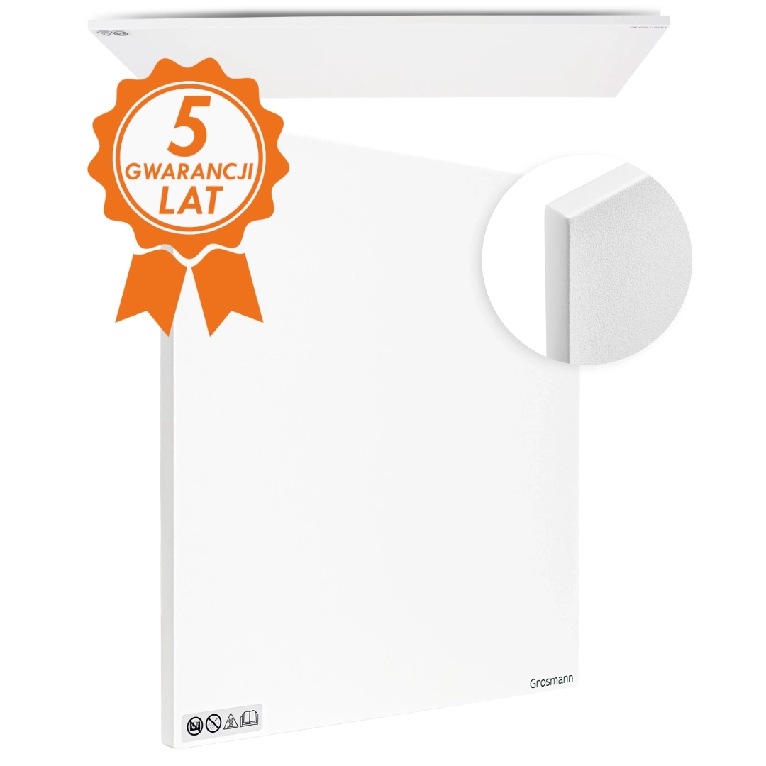Panel grzewczy na podczerwień Grosmann Infra został wykonany z najwyższej jakości, wytrzymałych materiałów, dzięki czemu zapewnia (utrzymuje) wysoką wydajność cieplną przez wiele lat użytkowania.