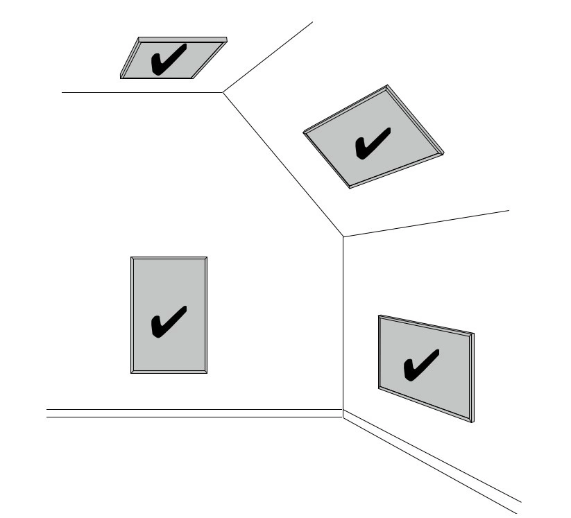 Łatwy montaż na ścianie lub suficie (również na skosach), w pionie lub poziomie
