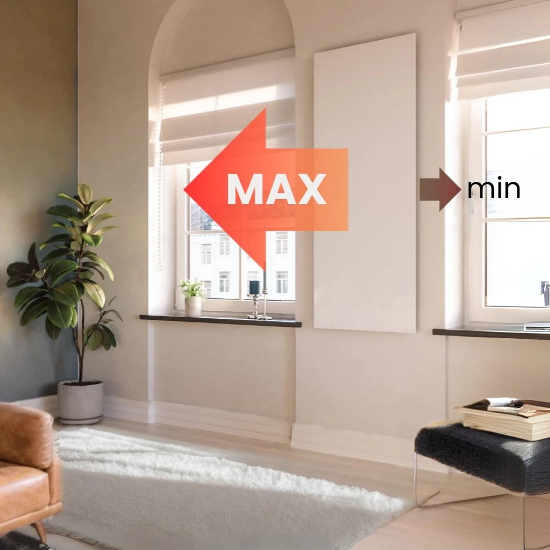 Płaskie grzejniki elektryczne do komfortowego i energooszczędnego ogrzewania domów, mieszkań, biur i sklepów. Za elegancką, białą metalową powierzchnią paneli na podczerwień znajduje się wysokiej jakości, niklowo-węglowa mata grzewcza zapewniająca równomierne ciepło podobne do promieni słonecznych. Przez co komfortowe ciepło odczuwalne jest już po paru minutach od włączenia panelu grzewczego, a wydajność jest średnio 50% wyższa niż przy zwykłych grzejnikach elektrycznych. W domach energooszczędnych oszczędności mogą wynieść nawet 70%.