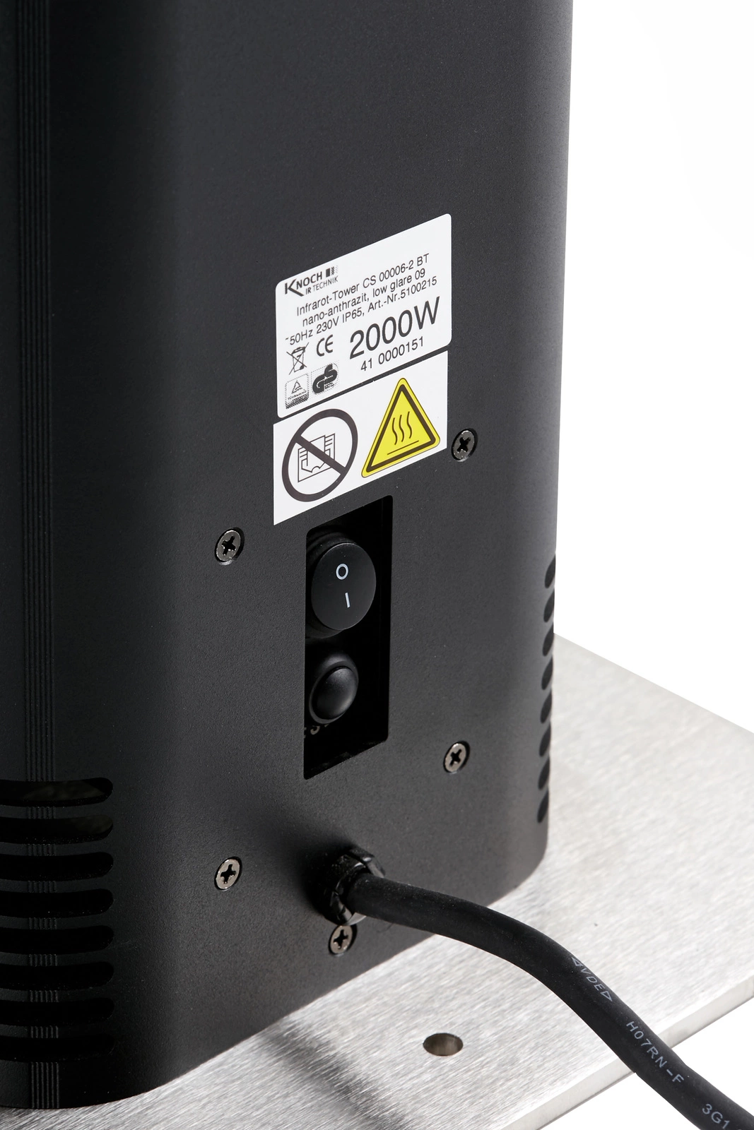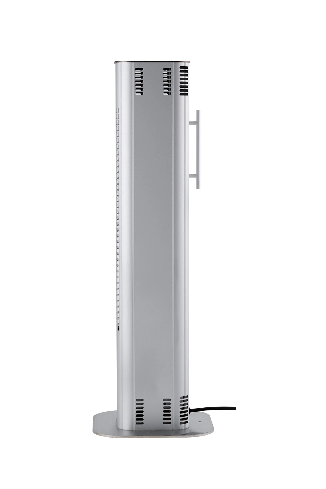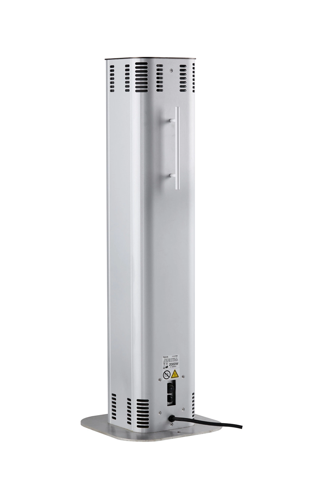 Przenośny, wolnostojący promiennik podczerwieni Grosmann InfraTower Comfortsun 2000 W może być wykorzystywany na tarasach, balkonach, w ogródkach restauracyjnych, czy innych miejscach, gdzie potrzebne jest ekonomiczne, a zarazem wydajne i szybko działające źródło ciepła. Promiennik jest wyposażony w odporną na uszkodzenia oraz wodoodporną obudowę o stopniu szczelności IP 65. Konstrukcja jest bardzo stabilna. Dodatkowo promiennik można przykręcić do podłoża (śruby nie są w komplecie).