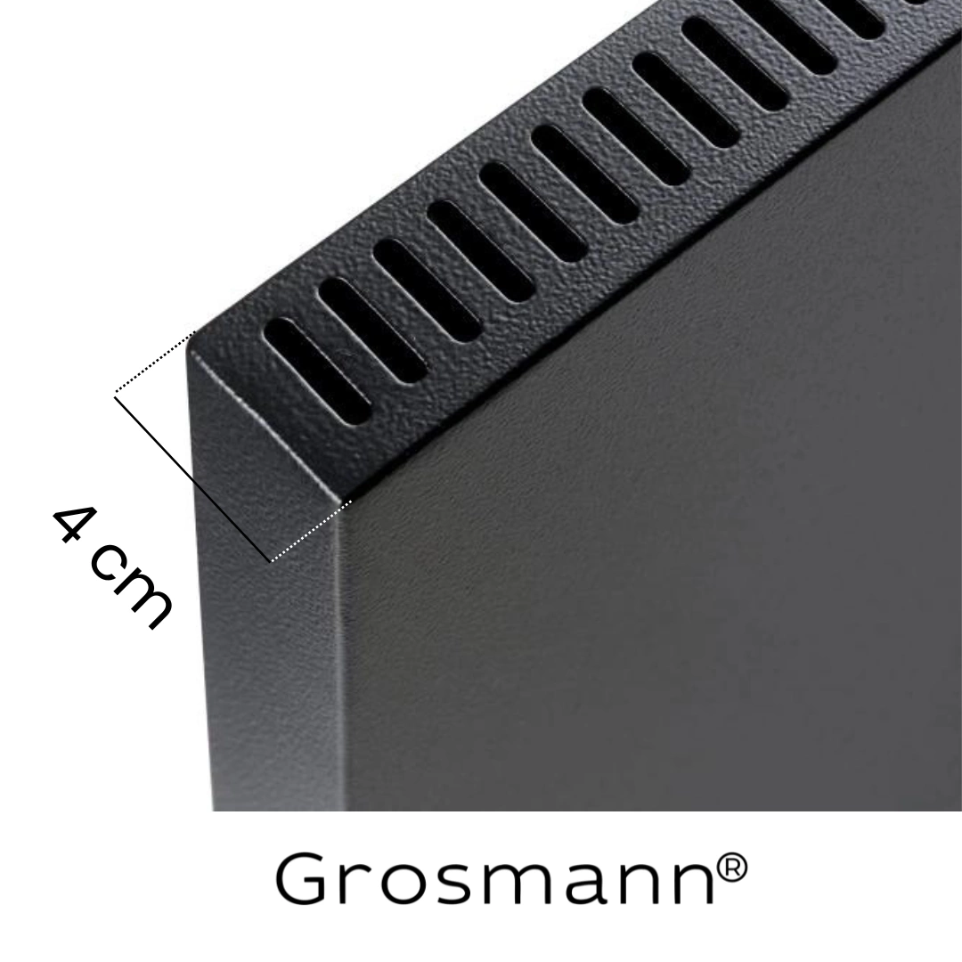 Tym, co odróżnia Grosmann Hybrid od zwykłych grzejników elektrycznych, jest to, że jego strona frontowa emituje ciepło do otoczenia poprzez fale podczerwone, podobne do promieni słonecznych. Ten typ ogrzewania szybko i bezpośrednio ogrzewa osoby, zwierzęta i przedmioty. Za elegancką, białą metalową powierzchnią grzejnika elektrycznego Grosmann Hybrid znajduje się wysokiej jakości, unikatowa, niklowo-węglowa mata grzewcza, zapewniająca równomierną emisję promieniowania. Dzięki czemu grzejniki Grosmann są wysoce wydajne i energooszczędne.