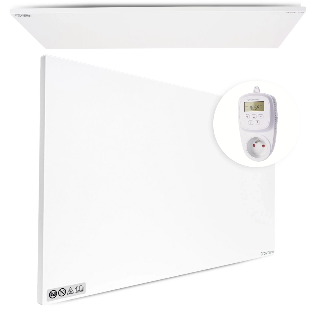 - Energooszczędny panel grzewczy na podczerwień Grosmann Infra ISP 900W do ogrzewania ok 18 m2 (max 25 m2), w zestawie z programowalnym termostatem gniazdkowym GT40. Dostępne różne moce paneli, w 6 rozmiarach. Montowane na ścianie lub suficie.