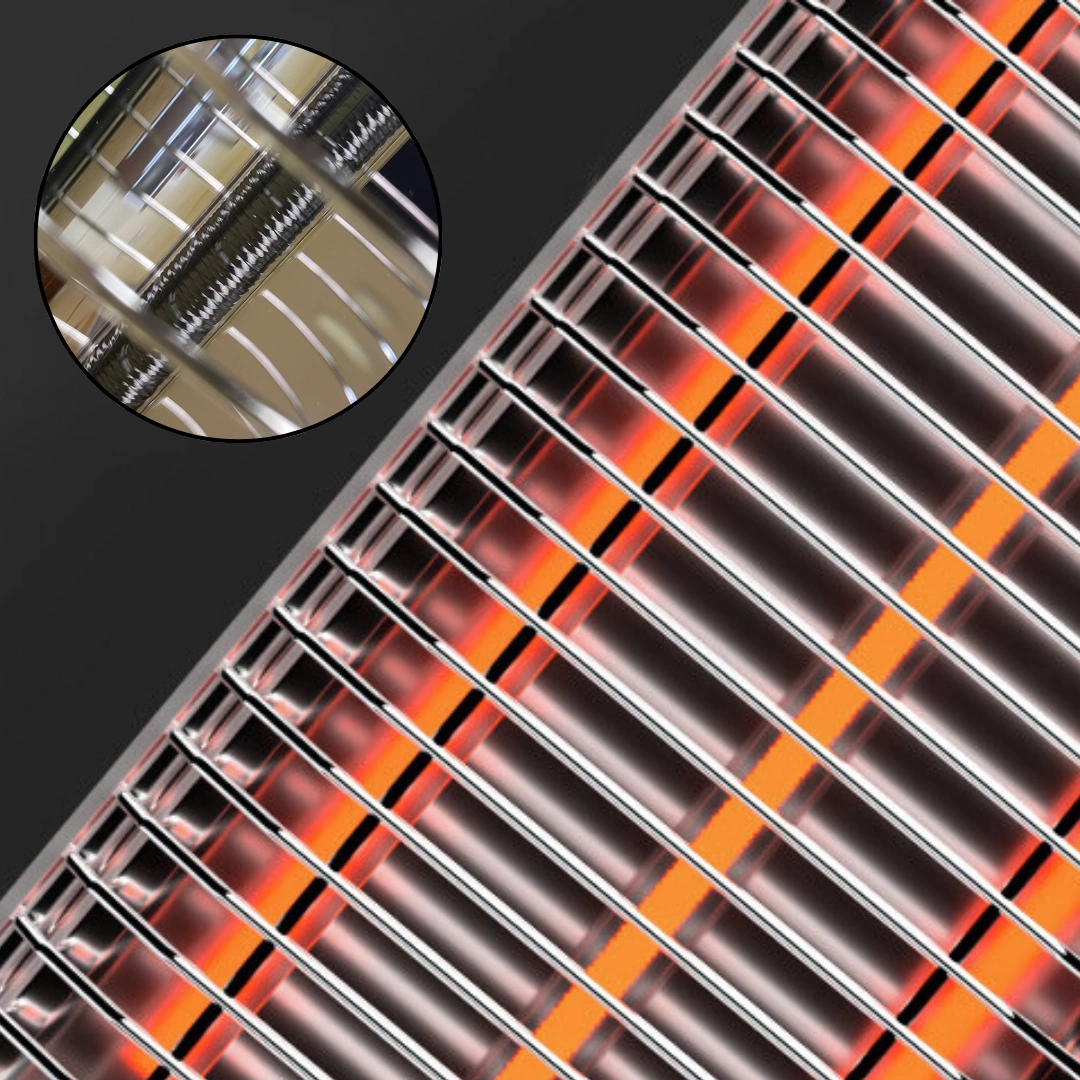 Veito Space ma znacznie większą zdolność do ogrzewania przestrzeni niż tradycyjne grzejniki gazowe, zużywając jednocześnie mniej energii. Unikalny element grzewczy - skondesnowane włókno węglowe w naszych nagrzewnicach podczerwieni wytrzymuje nawet 10 000 godzin, podczas gdy halogenowe żarówki trzeba wymieniać po zaledwie ± 5000 godzinach użytkowania. Lampa z włókna węglowego w promienniku Veito Space ogrzewa otoczenie w widmie średniej fali podczerwieni. W przeciwieństwie do innych tego typu promienników na rynku w 92% wytwarza promieniowanie podczerwone a reszta to łagodne i nie rażące oczu światło widzialne.