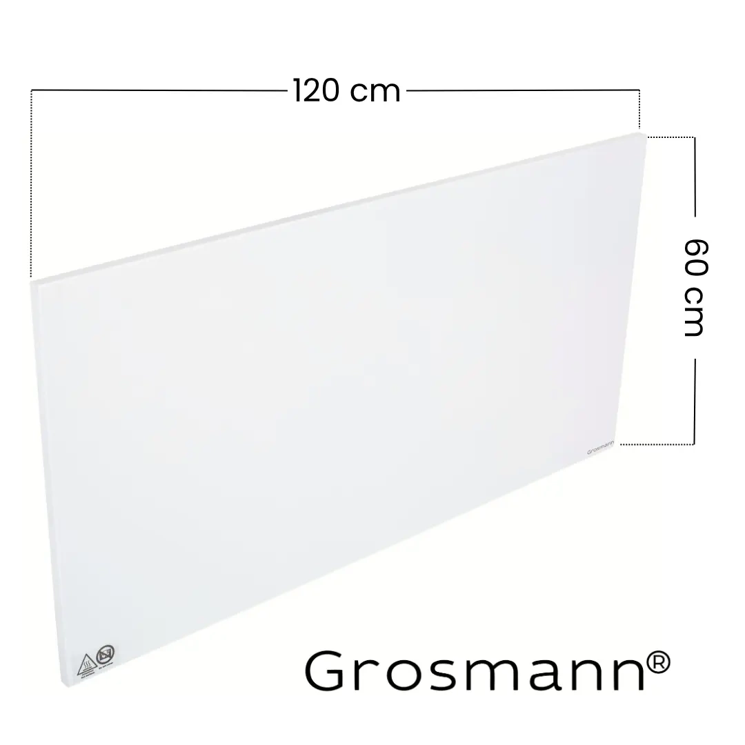 - Wysokowydajny panel grzewczy na podczerwień Grosmann Infra ISP BASIC o mocy 900W do ogrzewania ok 18 m2. (Dostępne różne moce, w 6 rozmiarach). Montaż ścienny lub sufitowy.