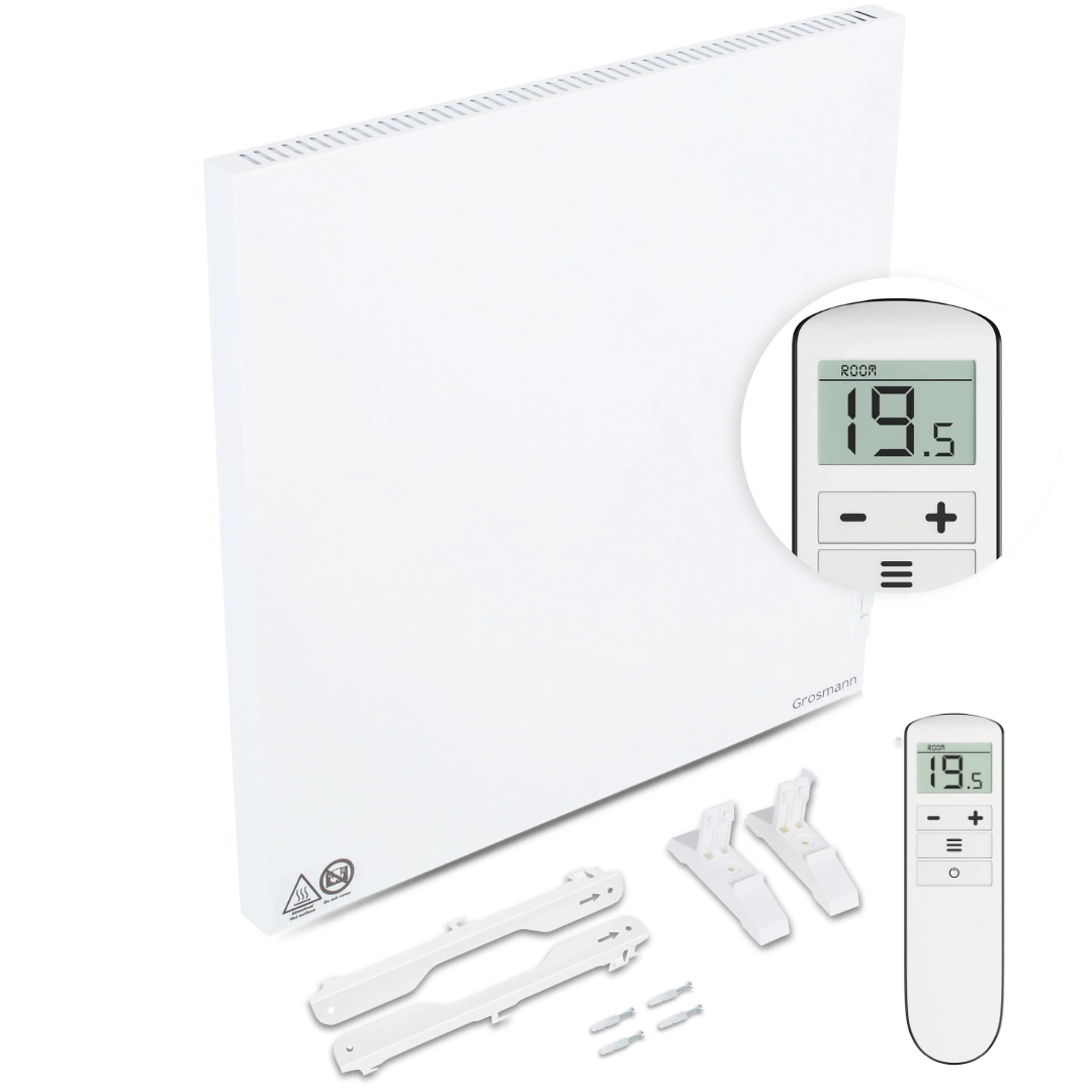 - Energooszczędny Elektryczny Grzejnik Hybrydowy Grosmann Hybrid RX 2w1 na podczerwień o mocy 600W sterowany inteligentnym pilotem-termostatem. Do ogrzewania 17 m² (nowe budownictwo), 12 m² (ocieplony budynek), 6 m² (stare budownictwo).