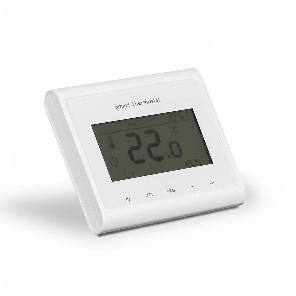 Na czytelnym wyświetlaczu ustawisz harmonogram dzienny lub tygodniowy z maksymalnie 4 zmianami temperatury dziennie. Możesz tworzyć strefy grzewcze (np. salon, sypialnia, biuro) i sterować nimi niezależnie. Termostat sam dba o komfort w różnych porach dnia – rano szybciej dogrzeje pomieszczenie, a w nocy obniży temperaturę, aby ograniczyć zużycie energii.