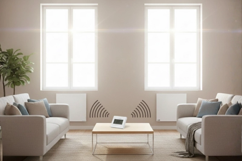 Urządzenie współpracuje z wieloma grzejnikami RX jednocześnie, tworząc inteligentny system strefowy. Jednym termostatem możesz sterować nawet kilkoma pokojami – bez prowadzenia przewodów i bez dodatkowych instalacji.